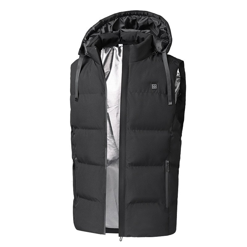 8-hour Usage time*USB Power Bank operated (not included)**3 Heat SettingsHeats up to 130°F2 external zippered pockets1 internal zippered pocket to hold the power bank (not included)Ultra-fine carbon fiber heating panelsHeat panels fully lining back and collarAdvanced heat-trapping insulated layerWater-resistantAnti-staticWind-resistantHigh-quality cottonLightweightMachine Washable – Gentle Cycle