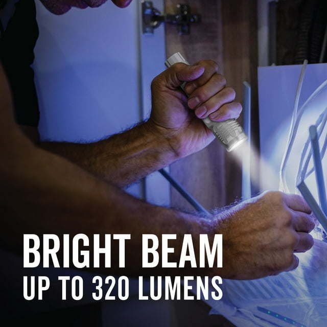 320 lumen light shines up to 130 meters with 3 light modes: High, Low and Strobe flashlight setting